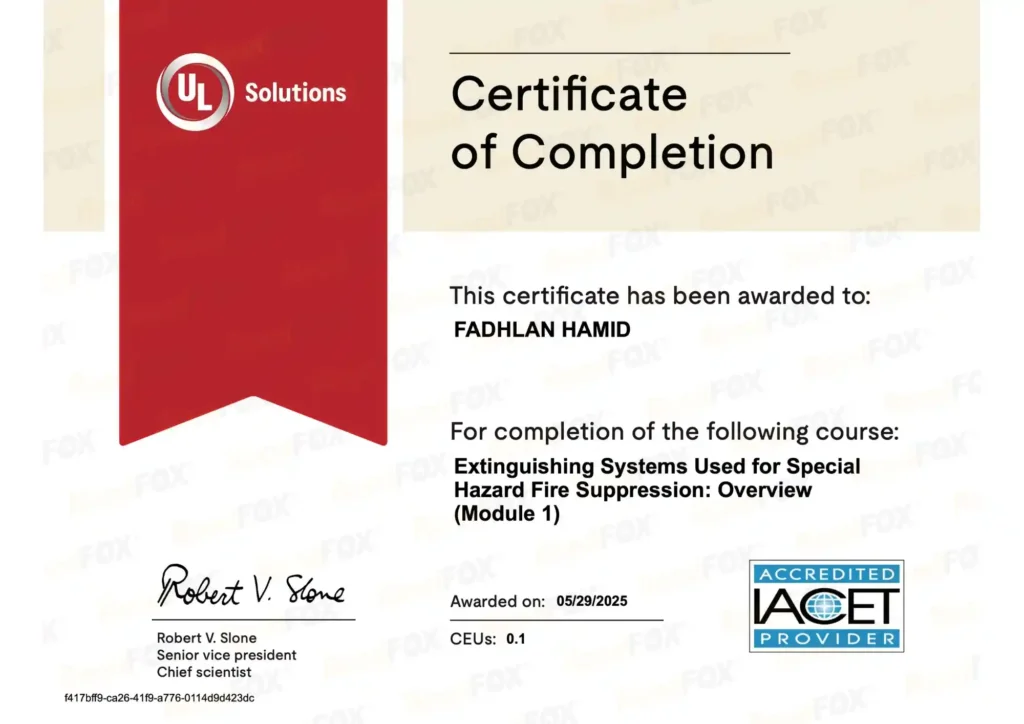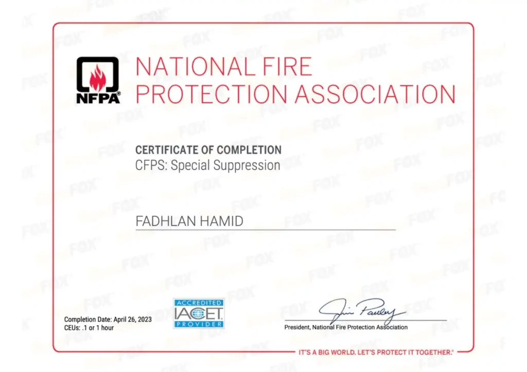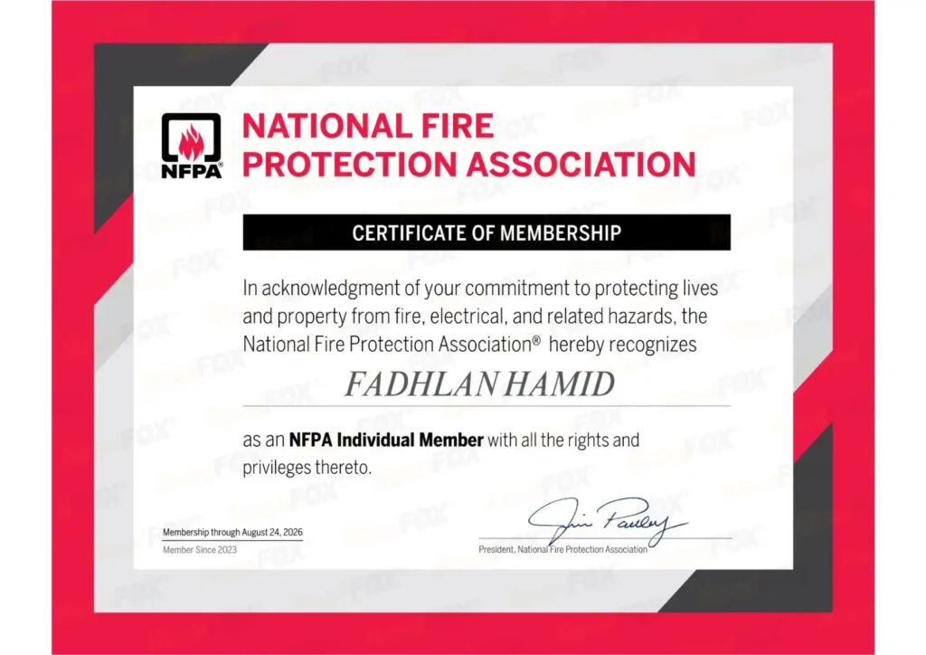 Berkarir lebih dari 16 tahun di industri keselamatan dan perlindungan kebakaran, khususnya sebagai Fire Protection Engineer (FPE), Fire Safety Risk Assessment (FSRA), Fire Risk Analytics, dan Pelindungan Bahaya Kebakaran Khusus atau Special Hazards Fire Protection: Clean Agent Fire Suppression Systems (Engineered & Pre-Engineered Typical Design). Serta lengkap dengan berbagai sertifikat keahlian dan pelatihan produk terkait yang terus terbarukan.