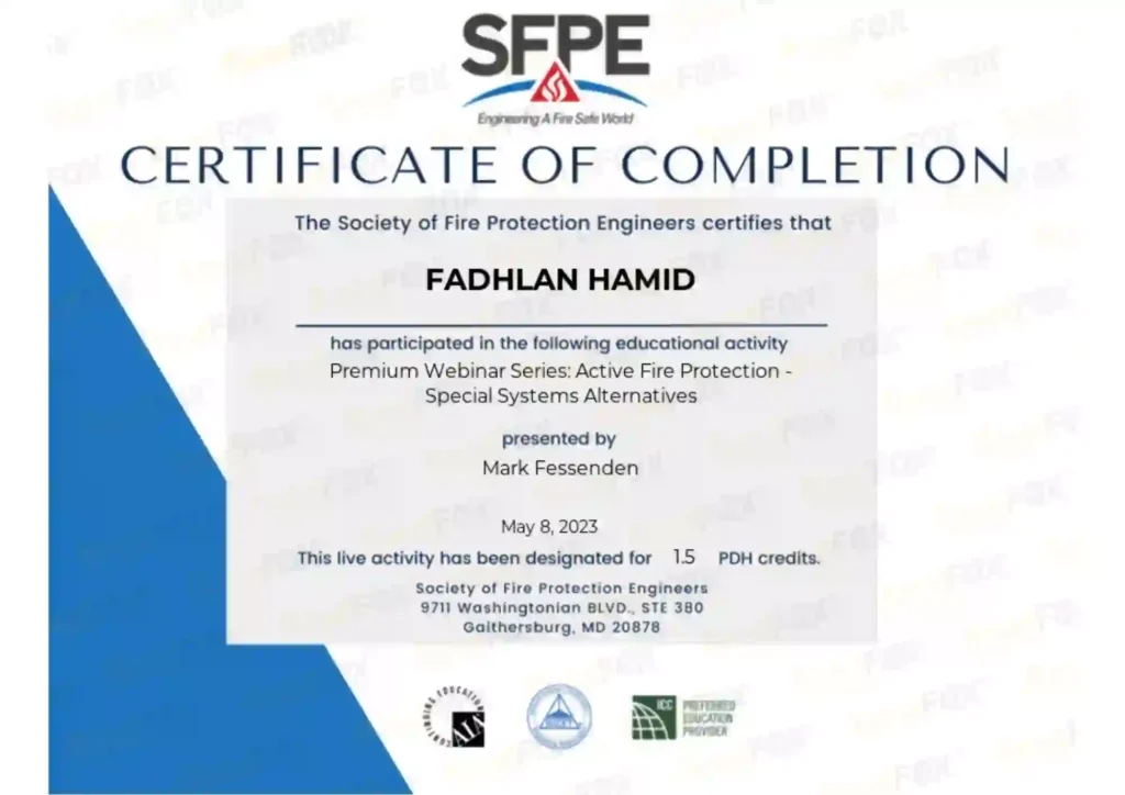 ✅ SFPE (Society of Fire Protection Engineers): Special Systems Alternatives.
